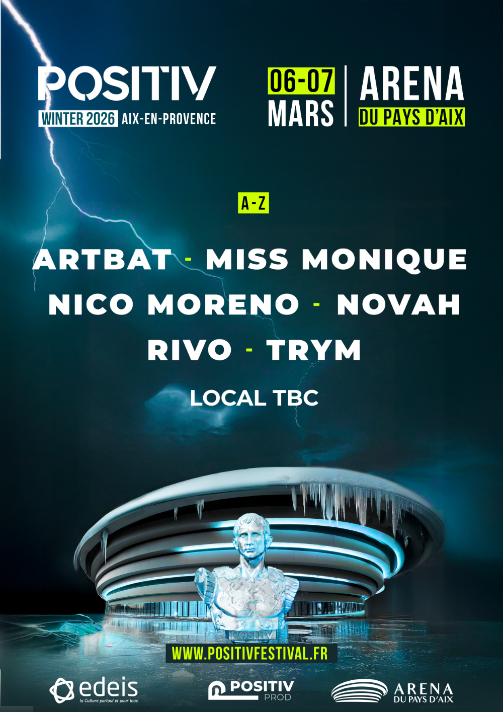 En mars 2026, POSITIV ouvrira sa saison avec le POSITIV Winter Festival, organisé les 6 et 7 mars à l’Arena du Pays d’Aix. Il s’agira d’une première édition hivernale, pensée en format indoor, avec une programmation centrée sur la techno et la hard techno.