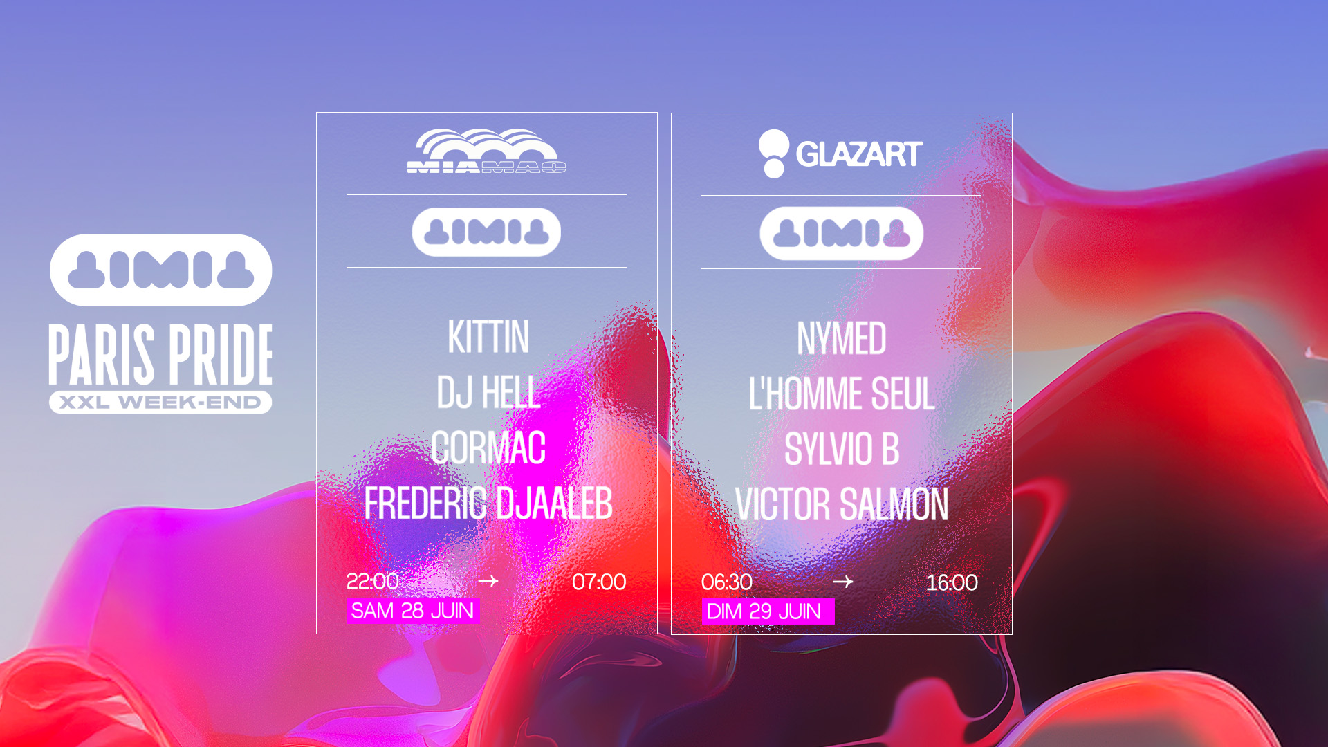 Alors, le 28 juin, jour officiel de la Pride parisienne, le Mia Mao et le Glazart, temples parisiens de la nuit libre, brandissent la fierté comme un drapeau, avec l’event TIMIT, son line-up en forme d’artillerie lourde et son ambiance incandescente.